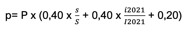 "P" is het bedrag van de uitgevoerde werken en "p" is het herziene bedrag.